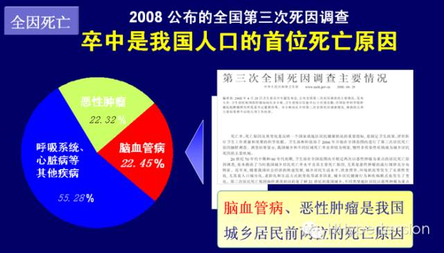 我国每年有130多万人死于脑卒中,男、女发病率在全球分列第三和第二。卒中已经成为我国居民第一位的死亡原因。根据世界银行的数据推算,假如不采取更有效措施,到2030年,中国将有3177万名脑卒中患者,且有年轻化趋势,中国的卒中防控形势非常严峻。